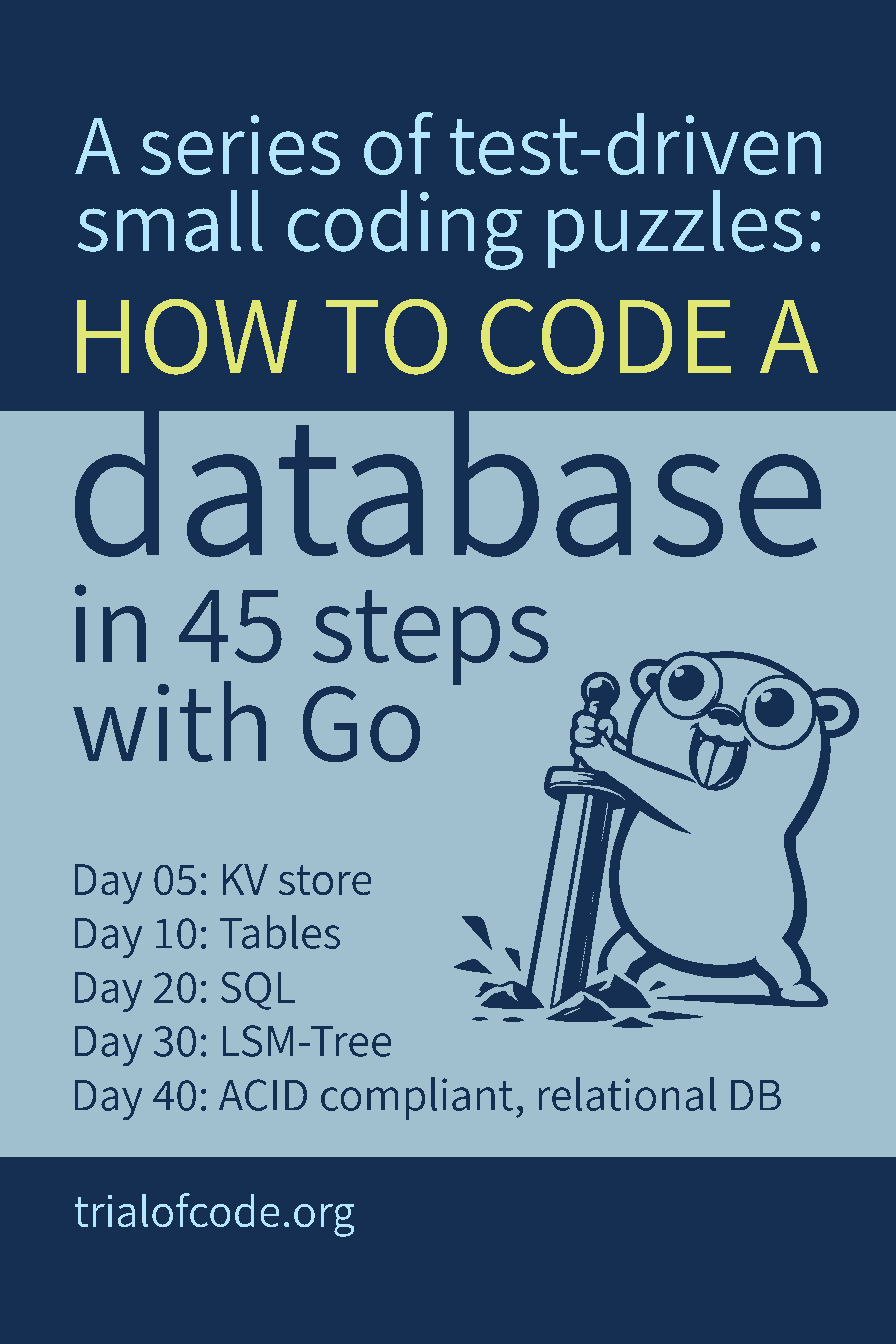 This series of test-driven small coding puzzles lets you code a database from scratch (no dependencies).